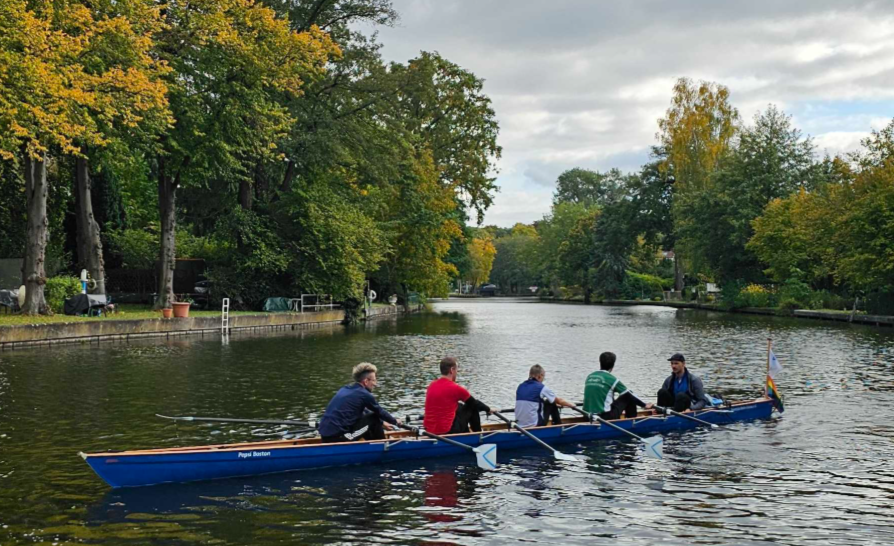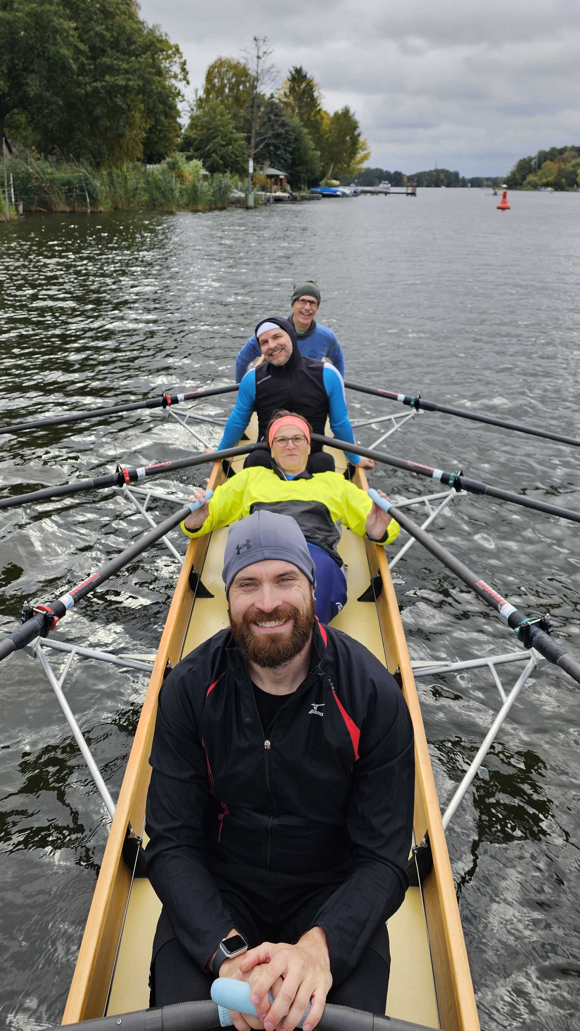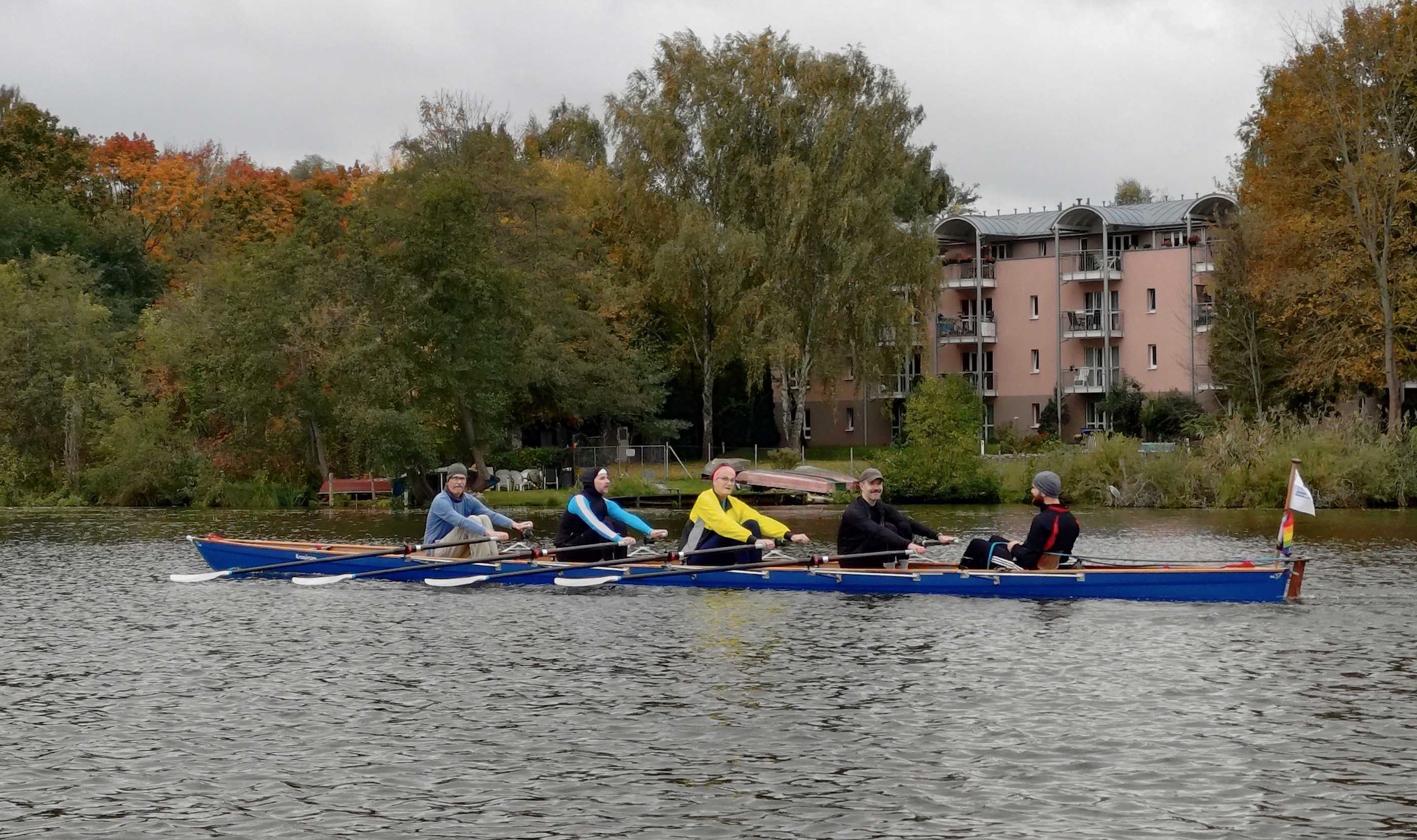 Queerschlag war wieder unterwegs – dieses Mal ging’s auf eine herbstliche Tagesfahrt nach Königs Wusterhausen. Bei bestem Ruderwetter und fast glattem Wasser haben sich vier bunt-gemischte Boote mit 20 Leuten auf den Weg gemacht.